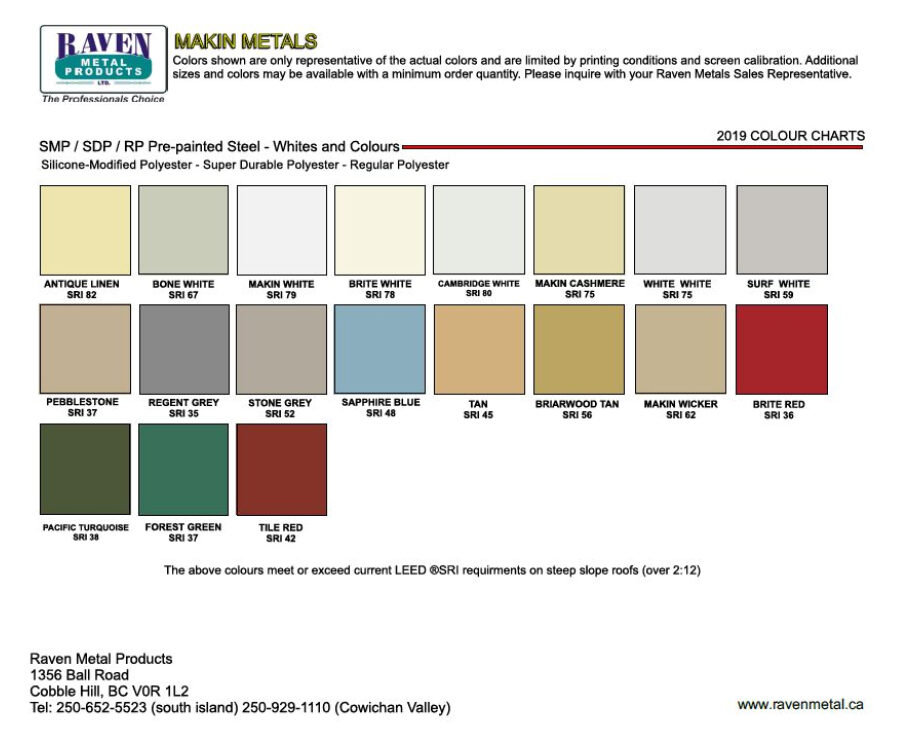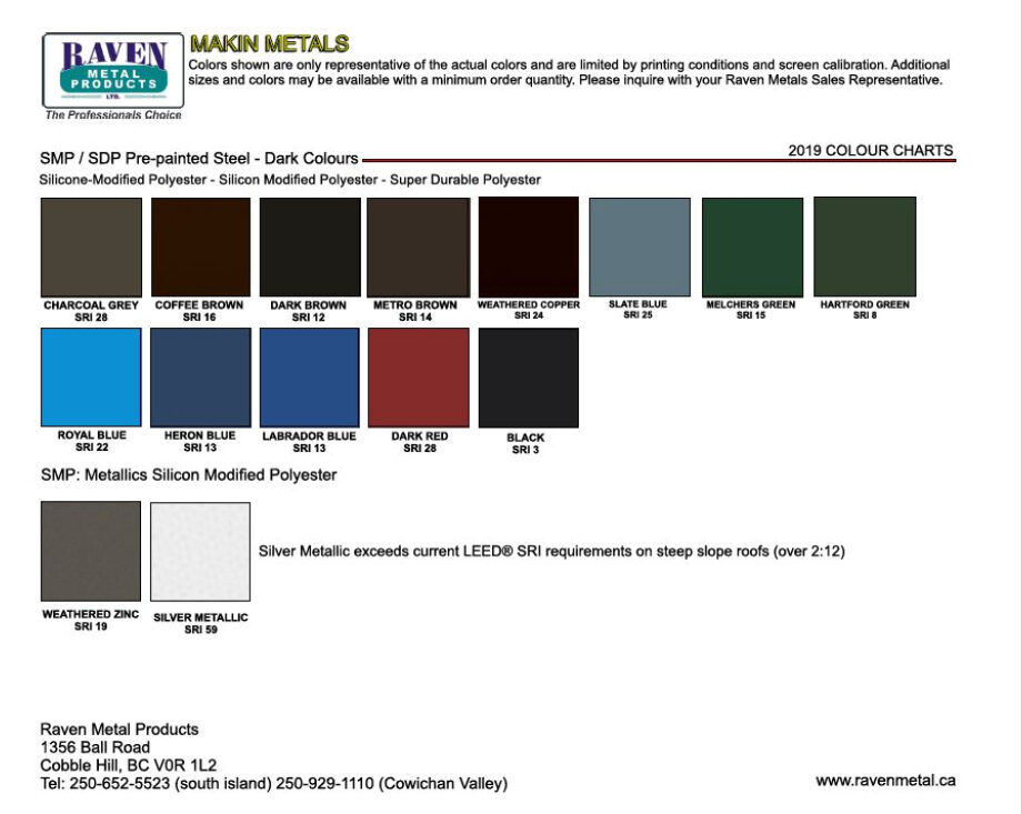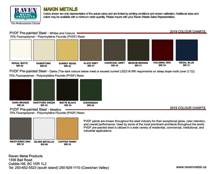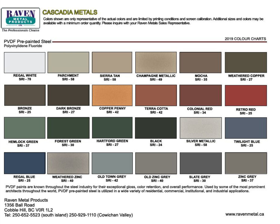 Raven Metal offers a range of standard and custom colour options for architectural sheet metal products.